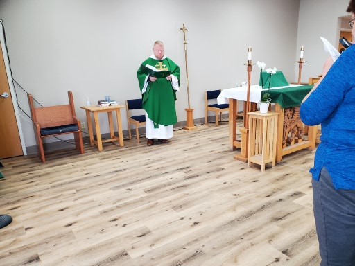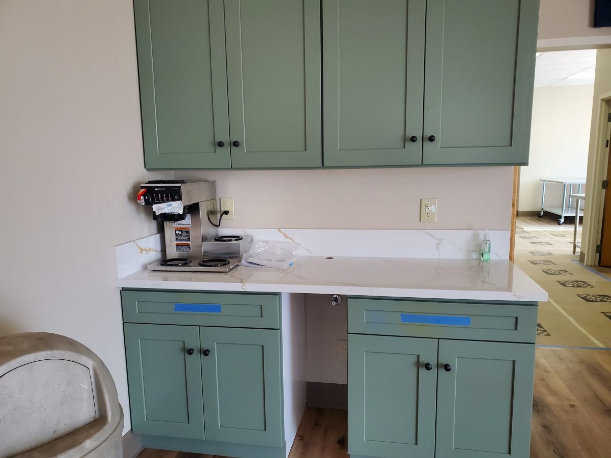 The kitchen remodel began in earnest in early January. Our contractor worked incredibly fast and most of the work was completed in about 6 weeks. Along with the kitchen remodel, the floors were replaced throughout the sanctuary and offices, children’s ministry storage and a coffee bar were installed, and most everything was repainted throughout. During her annual visit on February 16, The Rt. Rev. Susan Brown Snook blessed the remodeled space and dedicated the Amy Maxim Ennenga Outreach Center.